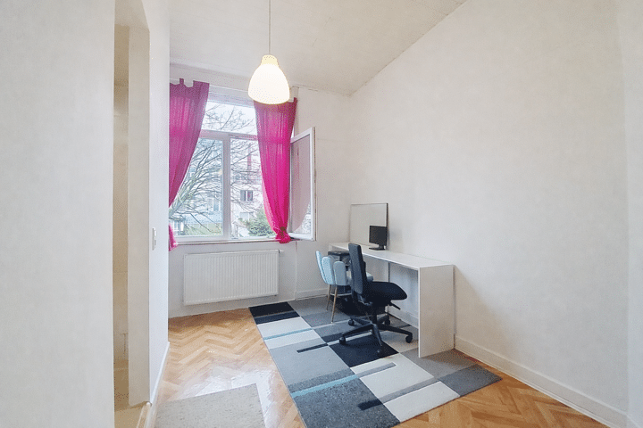Idéalement située au cœur de Bruxelles, à proximité immédiate des transports, de la gare du Nord, des commerces, des écoles, du parc Josaphat et de la Maison Communale de Schaerbeek, cette maison de maître datant de 1880 offre une superficie d’environ 320 m², hors caves (+- 60 m²).