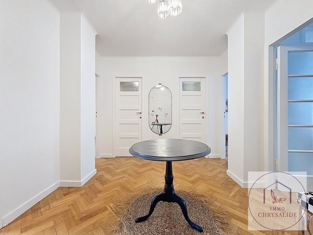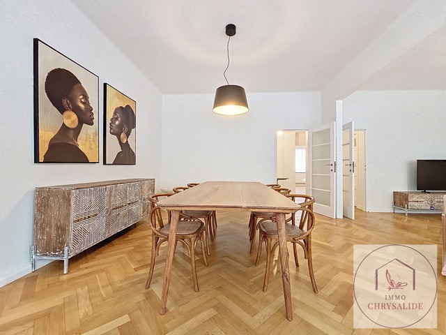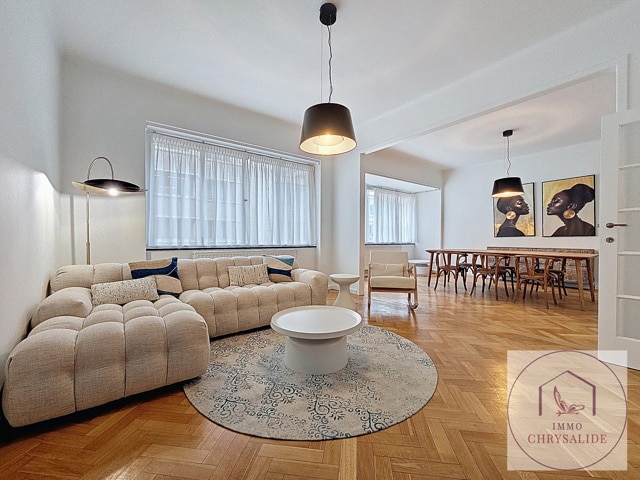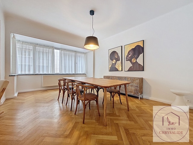 Idéalement situé à deux pas de la Place du Luxembourg au coeur du quartier Européen. Superbe appartement meublé avec beaucoup de soin et fraîchement remis au goût du jour tout en ayant conservé son authenticité. Offrant une superfice habitable de 86 m², composé d'un vaste hall d'entré désservant le salon, salle à manger de 36 m², cuisine équipée de 9 m² avec balcon et buanderie, chambre de 16m², salle de douche et WC. Provisions de charges 270 € tout compris sauf l'électricité et le Wifi. A ne pas manquer.