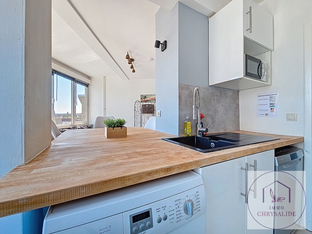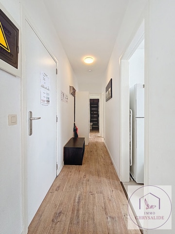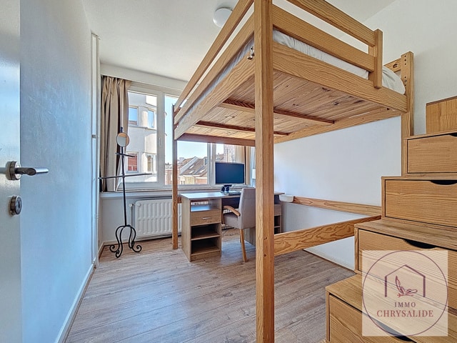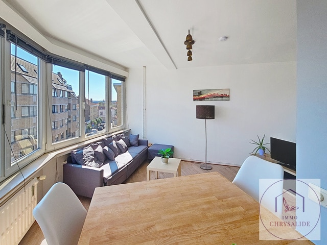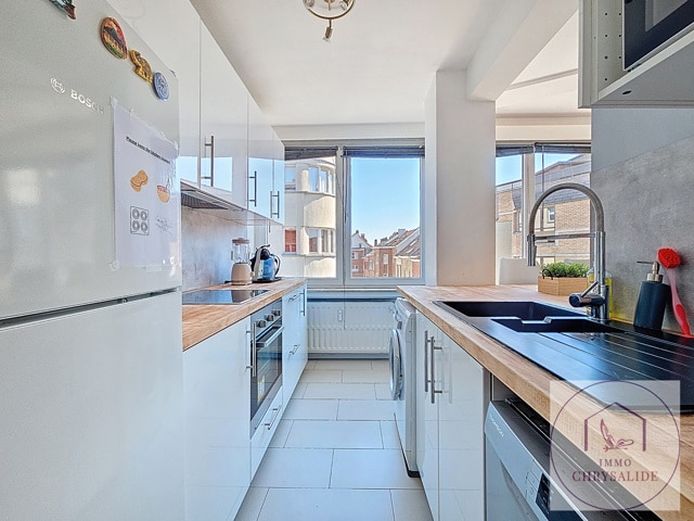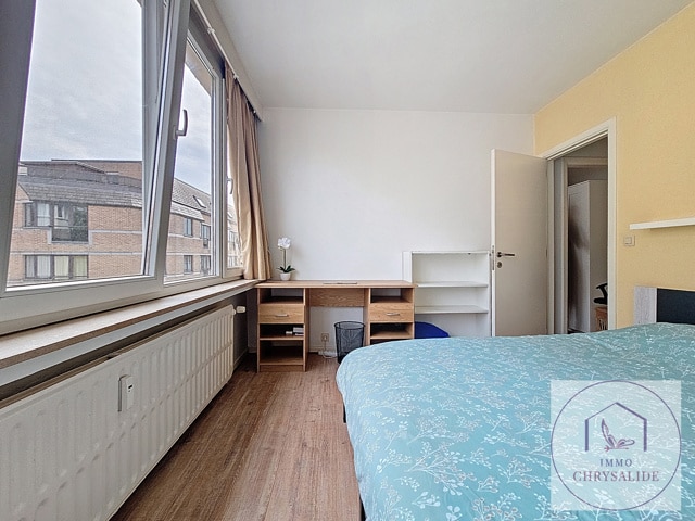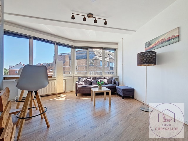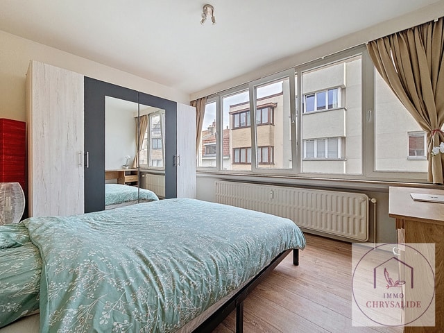 Coup de cœur assuré pour ce superbe appartement idéalement situé à deux pas du METRO HANKAR et proche de tous commerces. Offrant une superficie habitable selon PEB de 62 m² ENTIEREMENT RENOVE en 2018 et au 2ème étage d'un petit immeuble sans ascenseur. Composé un hall d'entrée, salon/salle à manger baigné de lumière avec cuisine ouverte, deux chambres de 12 m² et de 8 m², salle de douche de 3, 5 m², et une grande cave. PEB E+. Charges communes incluant le chauffage et l'eau de 130 € / mois. Libre à l'acte mais les chambres sont louées individuellement à 620 € et 590 €. Possibilité de racheter les meubles. Inscription pour les visites en ligne.
