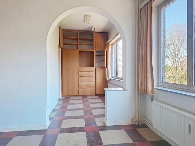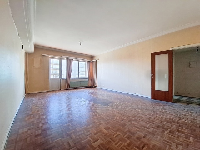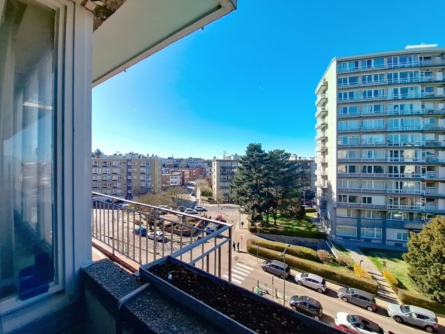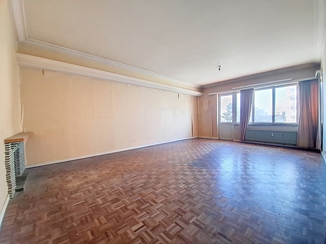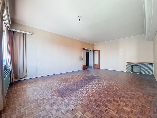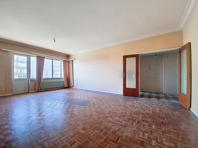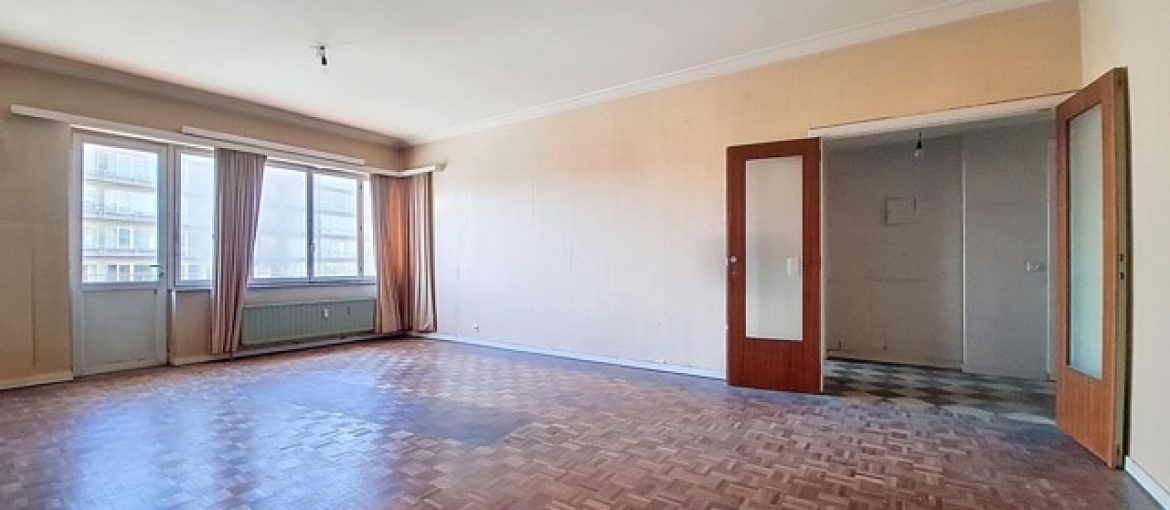 SOUS OPTION Idéalement situé à deux pas de Saint-Julien et à 5 minutes à pied du Métro HANKAR. Spacieux appartement de 99 m² avec GARAGE fermé composé suivant titre de 3 chambres avec une salle de bain, mais aménagée en 2 chambres avec dressing et 2 pièces d'eau, salon de 32 m² avec balcon, cuisine de 9 m² avec terrasse, une chambre de 13 m² avec armoires encastrées, deuxième chambre de 15 m² avec espace dressing, terrasse à l'arrière (fermée sans permis), salle de bains. Châssis d'origine. PEB E+. Cave. Visites sur inscriptions en ligne.