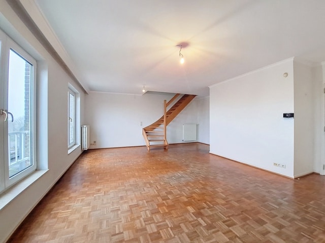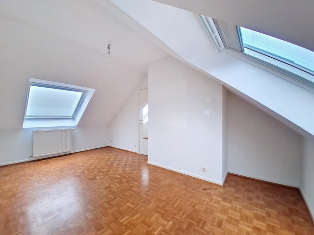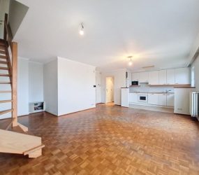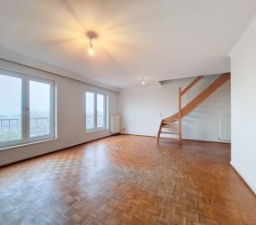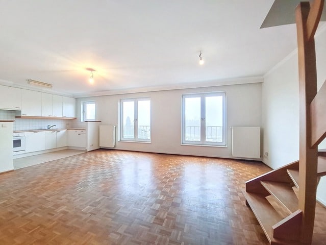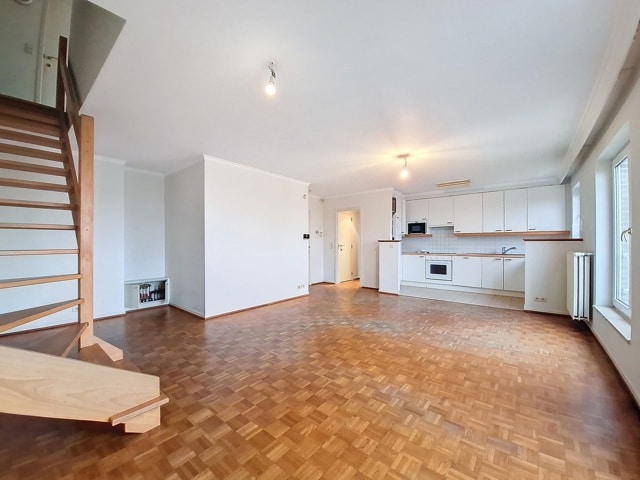 SOUS OPTION Charmant duplex 3 chambres idéalement situé dans un petit immeuble au 3ème et dernier étage sans ascenceur. A deux pas de la Forêt de Soignes et des commerces composé d'un grand salon/salle à manger de 32 m², cuisine américaine, trois chambres de 10, 14 et 13 m², salle de bain et deux toilettes, nouvelle chaudière individuelle au gaz. Grande cave et possibilité d'acheter un emplacement de parking au prix 30 000 €.
