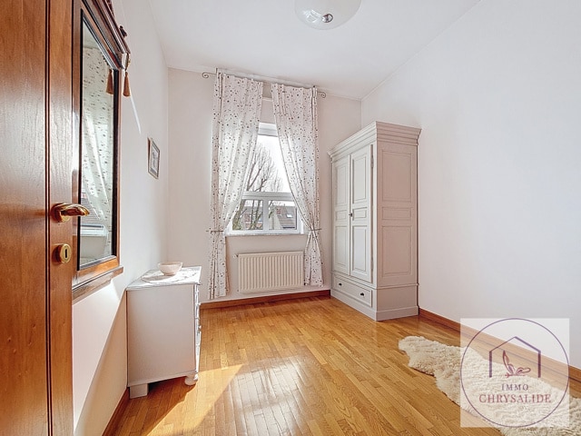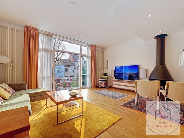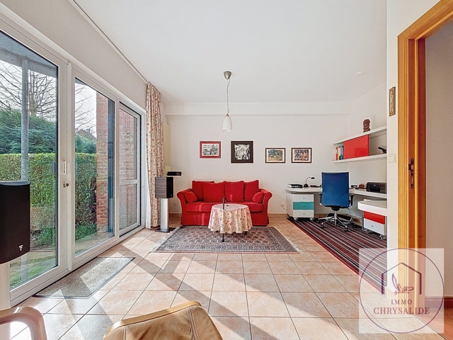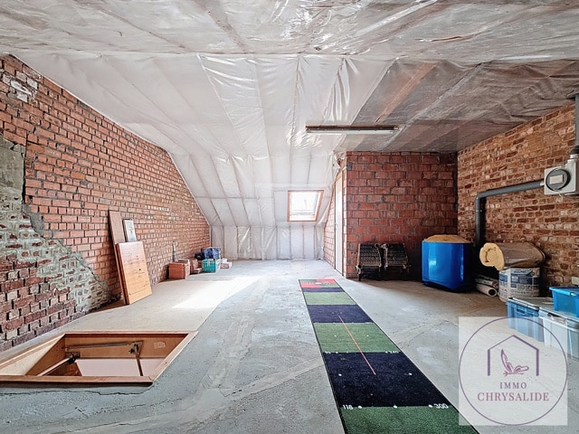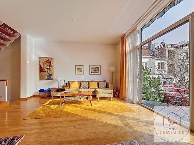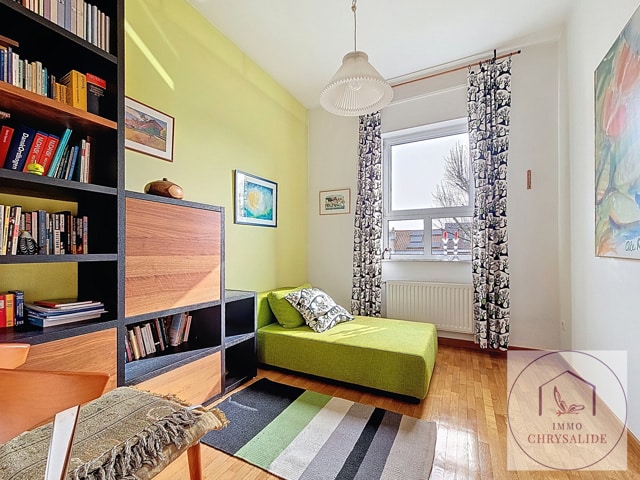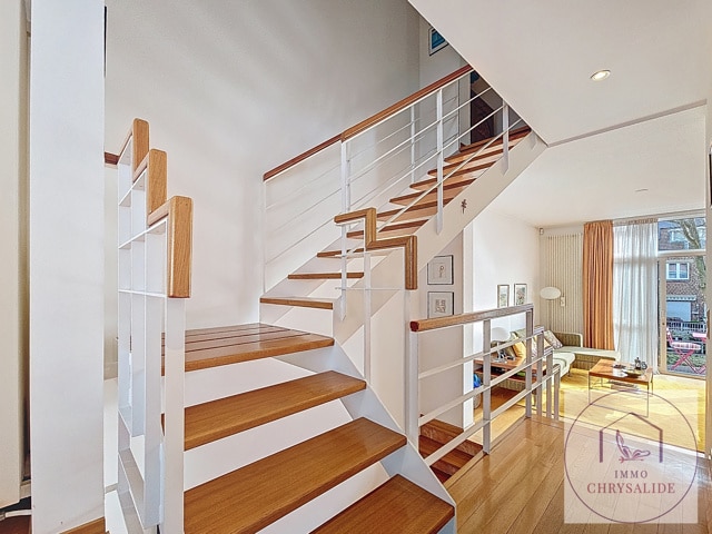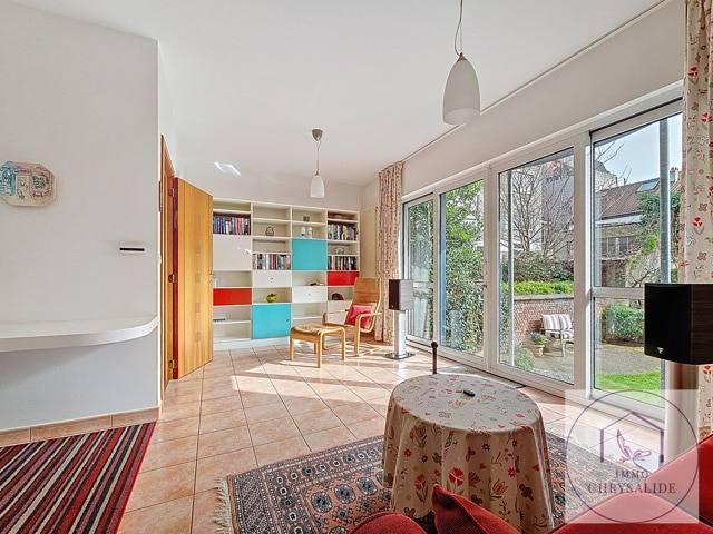 Authentique maison reprise à l'inventaire du Patrimoine de Bruxelles construite en 1993 dans un état impeccable. Vous serez immédiatement séduit par sa luminosité et le jeux de niveaux entre les pièces. Offrant une superficie totale de 254 m² dont 217 m² habitables et un extérieur de 62 m². Composée d'un beau hall d'entrée désservant un bureau de 17 m² (POSS d'y ajouter une SDD et WC) avec accès au jardin aménagé, garage avec porte motorisée et isolée, un superbe escalier ouvert laisse apparaître le salon avec feu ouvert et bibliothèque, accès à la terrasse, salle à manger avec cuisine équipée et débarras, WC séparé. Au 2ème, 2 chambres de 9m² avec une 1 SDD et WC, chambre principale de 17m² avec salle de bains privative. Le grenier dispose de 56 m² et tout est prévu pour l'aménager, vaste caves avec buanderie. Cette splendide maison ne demande qu'à vous acceuillir. (Petite infraction pour les châssis de la façade avant).