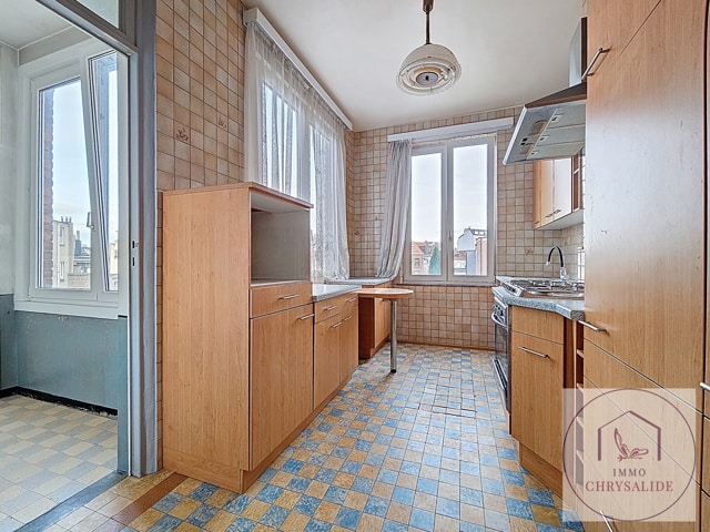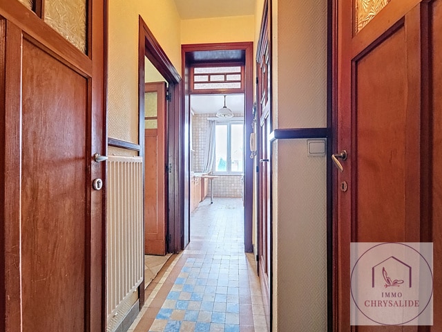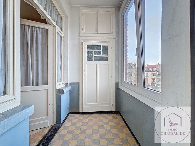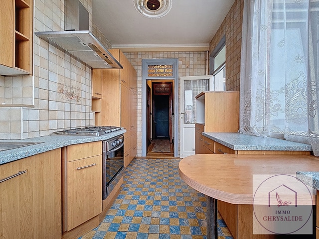 SOUS OPTION Dans un petit immeuble sans ascenceur et au 2ème étage, appartement 1ch de 61 m² à RENOVER /MODULER. Composé d'un hall d'entrée, d'une cuisine de 11m², salon salle à manger de 36 m² donnant accès à une petite terrasse, chambre de 7m². L'appartement était utilisé en duplex avec le 3ème, il faut donc y créer une salle de bains et revoir l'espace. Pas de chauffage central, électricité non conforme, châssis double vitrage PVC. 2 Caves. Faibles charges communes de 25 € / mois. Possibilité de visites sur inscription en ligne ou au 02/880 70 20.