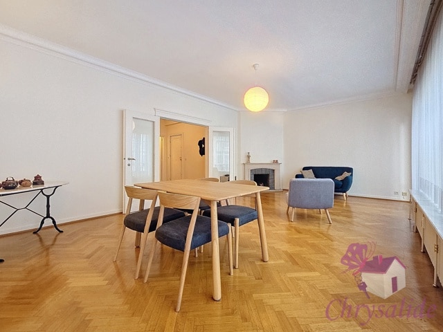 SOUS OPTION Idéalement situé au coin de l'Av Winston Churchill charmant appartement à remettre au goût du jour de 3ch 2 SDB offrant une superficie habitable de 106 m², composé comme suit: grand hall d'entrée, salon/salle à manger (32m² avec possibilité de sacrifier une chambre pour agrandir le salon), cuisine semi-équipée (10m²) avec balcon de 2, 8 m² exposé Ouest, 3 chambres de 15, 10 et 9 m², 2 SDB, WC séparé. Cave. PEB D- et installation électrique non conforme. A ne pas manquer inscription pour les visites en ligne.