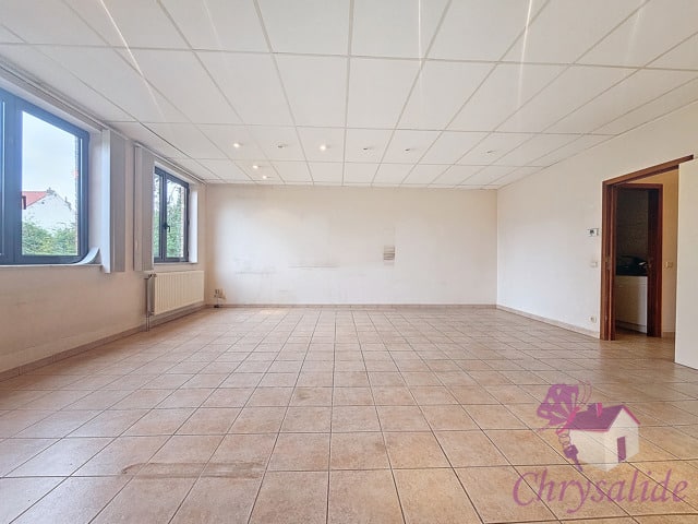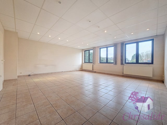 AFFECTATION BUREAUX Dans un charmant petit immeuble agréable espace de bureaux de 82 m² avec au 3ème étage un grenier aménagé de 31 m² avec sanitaires soit au total 113 m². Le bureau est composé d'une pièce principale lumineuse de 41 m², 2 pièces de rangement de +/- 4 m² respective, 1 cuisine de 3, 31 m², 2 bureaux de 6, 5 m² et 8, 5 m², espace sanitaires de 9 m². Chaudière individuelle au gaz récente, châssis double vitrage en bois, peinture à rafraîchir. POSSIBILITE d'acquérir un emplacement parking en sous-sol 21 000 €. Excellent PEB C. Charges communes 77 € par mois.