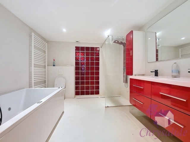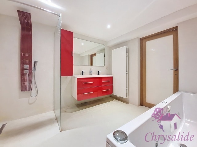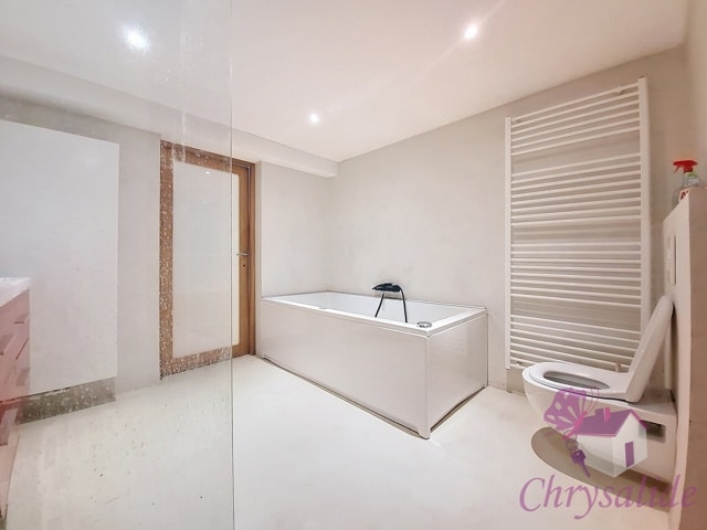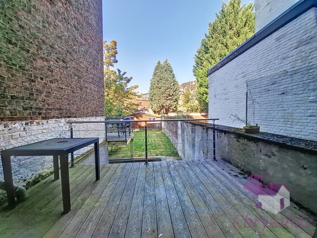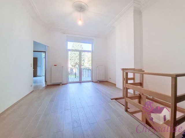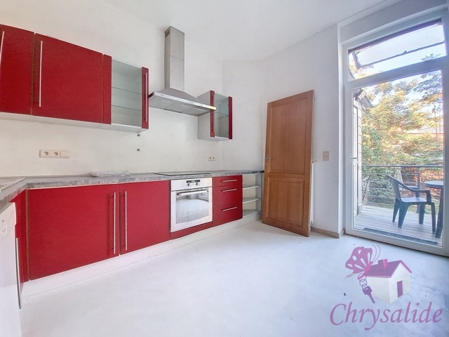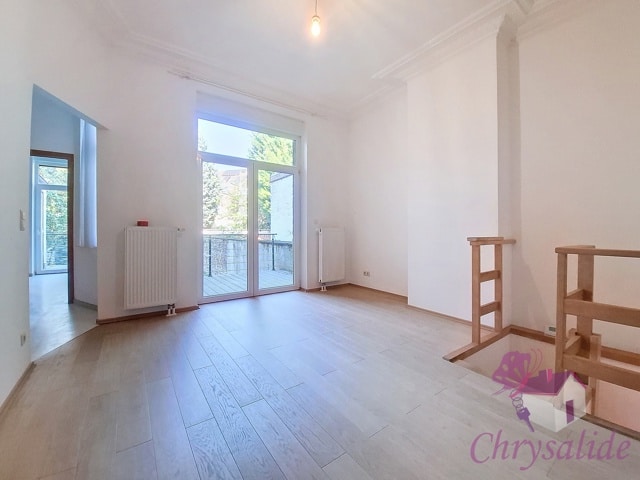 Duplex de 110 m² de 2 chambres, 2 salle de bains, 3 terrasses et jardin de 138 m². Composé comme suit: slaon de 40m² donnant sur une terrasse, cuisine semi-équipée de 11 m² avec terrasse aussi, salle de bains, au sous-sol 2 chambres de 11 et 17 m² ayant accès à la terrasse, belle salle de bains avec douche. A ne pas manquer inscription pour les visites en ligne.