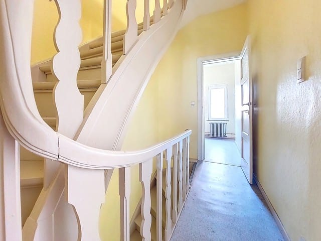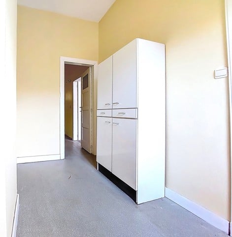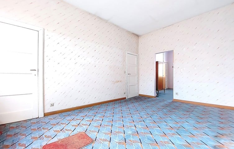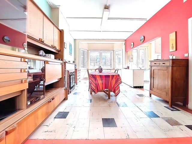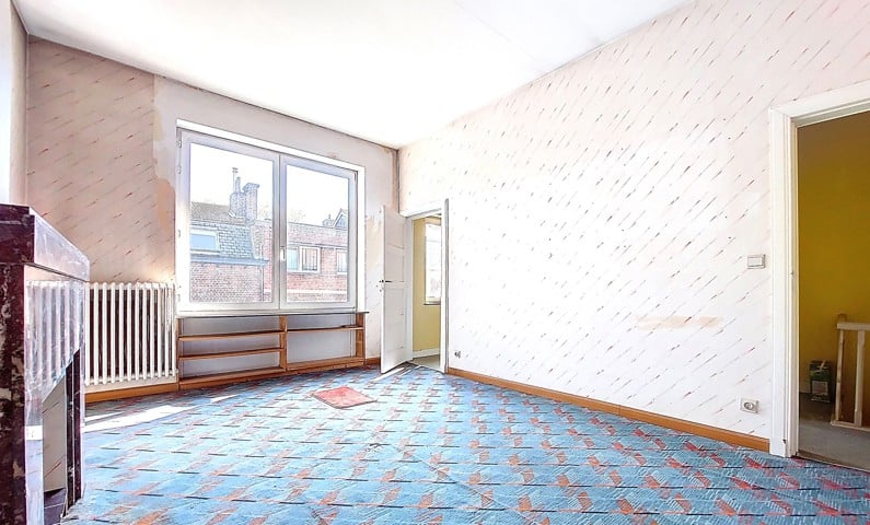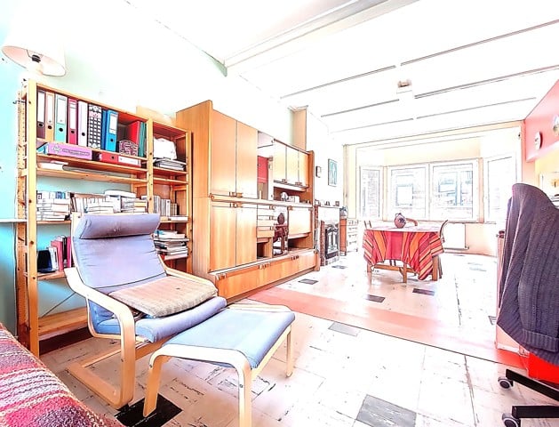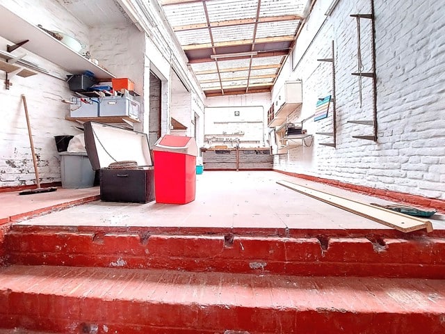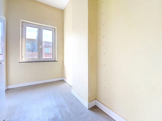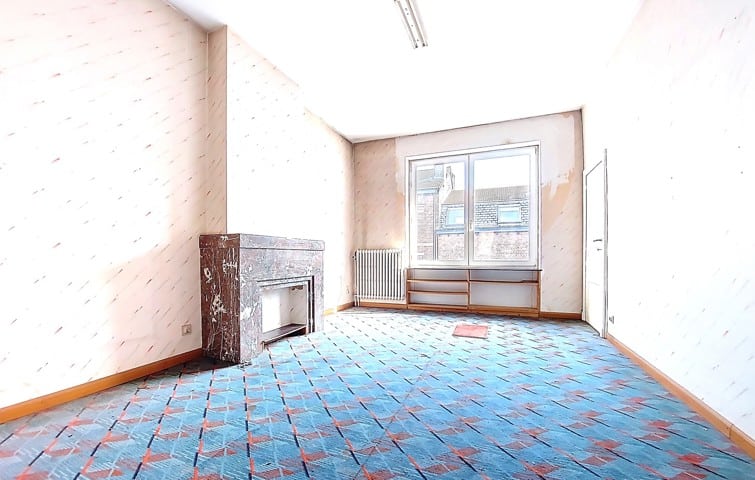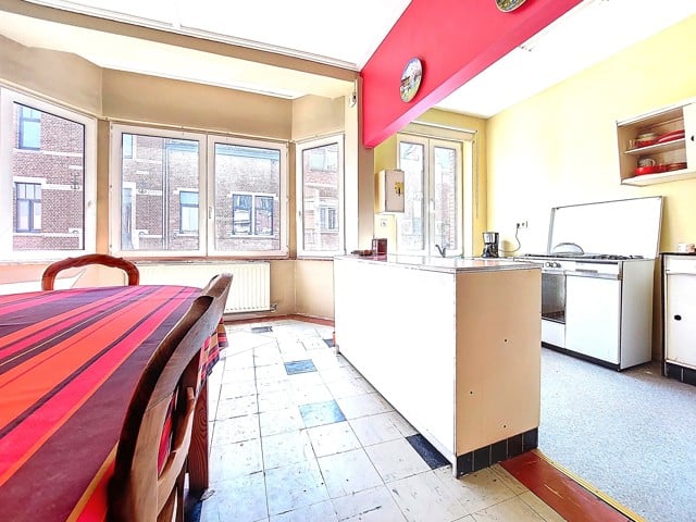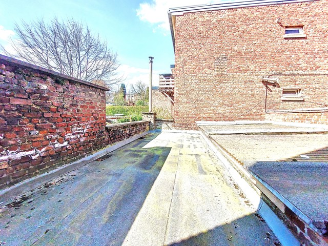 Visites au 0491/32. 50. 35 ! A saisir à 5 min du centre de Liège et des axes autoroutiers, au coeur du quartier St Laurent, maison mitoyenne de 175 m2 de sup. hab. 2 chambres, 2 bureaux, garage. Au rez de chaussée, vaste hall d'entrée avec une pièce en facade avant (bureau 9 m2 ou autre avec volet) longue allée de parking intérieur, atelier. Au 1er étage , bel espace carrelé séjour/salon de 44 m2 avec cuisine à aménager, 1 salle d'eau lavabo/wc et accès vers une terrasse arrière en roofing. (24m2) Au 2 ème étage, deux chambres très spacieuses (19 et 16m2) balcon arrière, sdb baignoire/lavabo/wc, un bureau. Une mise au gout du jour est à prévoir. Chauffage central gaz, nouveau boiler Van Marck100 L, tableau de fusible récent, cassette à bois, châssis PVC DV, toitures tuiles, PEB D, revenu cadastral 970€. Visites au 0491/32. 50. 35